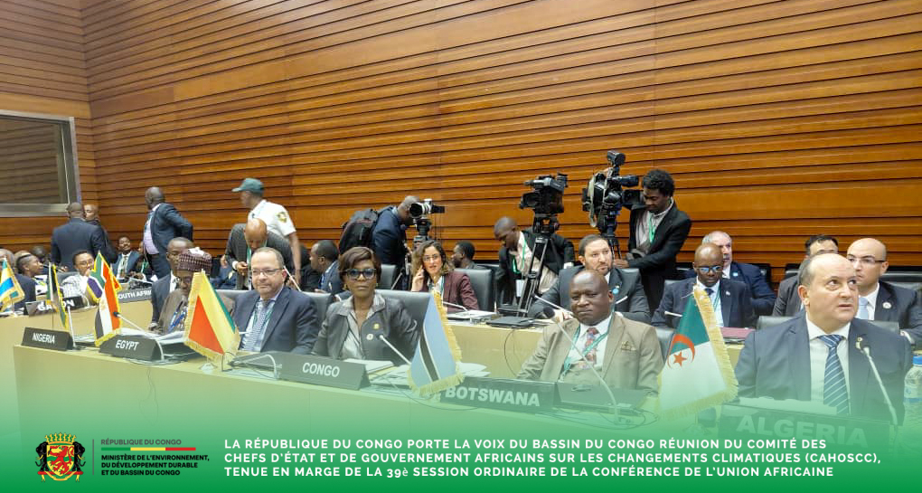 Madame Arlette Soudan-Nonault, Ministre de l’Environnement, du Développement durable et du Bassin du Congo, également Secrétaire exécutive de la Commission Climat du Bassin du Congo (CCBC), a pris part à la réunion du Comité des chefs d’État et de gouvernement africains sur les changements climatiques (CAHOSCC), tenue en marge de la 39ᵉ session ordinaire de la Conférence de l’Union africaine.